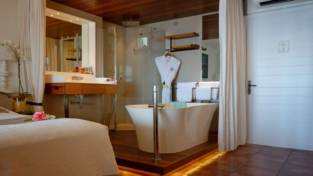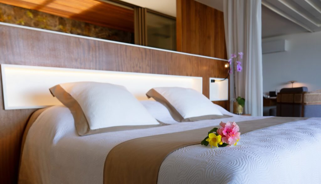 Dédiée exclusivement aux couples (2 adultes maximum), cette suite de 110 m² est l’incarnation du romantisme à Saint-Leu. Elle se distingue par une immense terrasse extérieure abritant un salon de détente privé et un spa de 10 m². L’intérieur propose un salon spacieux au style créole authentique, offrant une intimité totale et des prestations haut de gamme pour un séjour inoubliable dans ce resort à la Réunion.