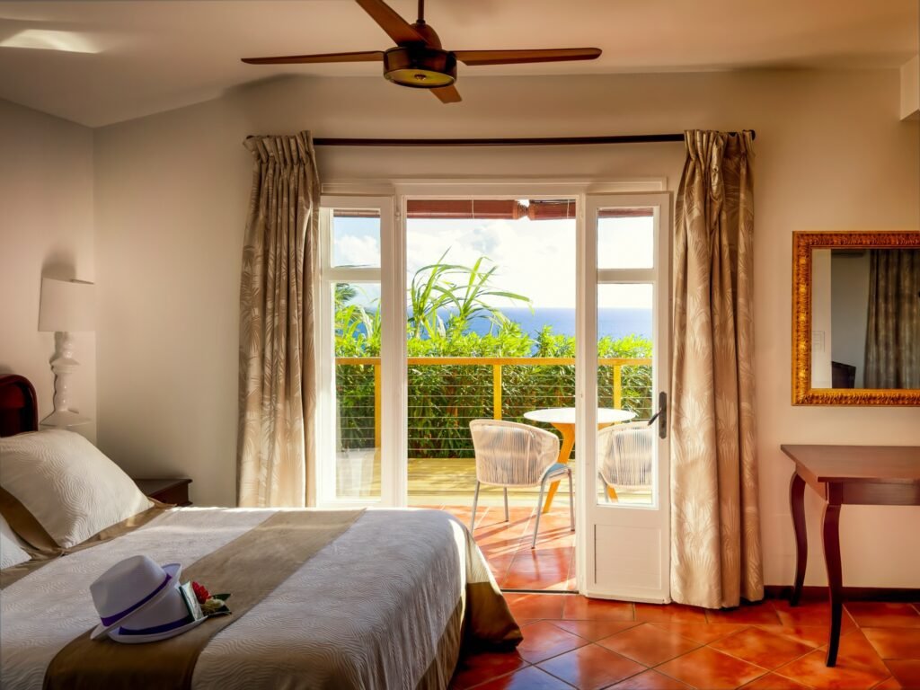 D’une superficie de 35 m² terrasse incluse, ces chambres situées dans la grande maison créole offrent un panorama saisissant sur l’océan. Conçues exclusivement pour 2 adultes, elles disposent d’une terrasse privée équipée d’une large chaise longue et d’une table en marbre. L’élégance du style colonial s’y marie au confort moderne (climatisation, Wi-Fi), avec une unité entièrement accessible aux personnes à mobilité réduite.