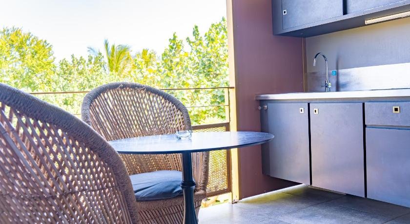 Offrant une vue dominante sur la piscine, cette chambre triple combine un lit double et un canapé-lit dans un environnement au design contemporain. Équipée d’une terrasse et d’une climatisation indépendante, elle permet de profiter pleinement du climat tropical de la Réunion dans un cadre «lifestyle» haut de gamme.