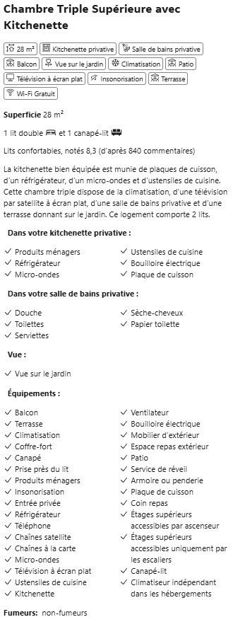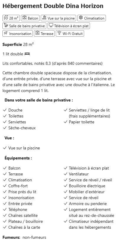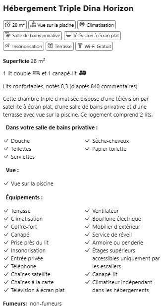 - Annulation : Les conditions varient selon le tarif choisi (flexible ou non remboursable).