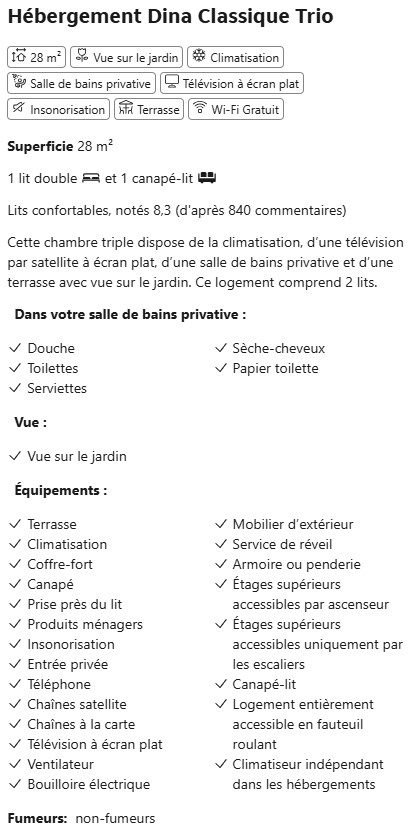 - Animaux : Les animaux de petite taille sont généralement acceptés (supplément d’environ 15 €/nuit).