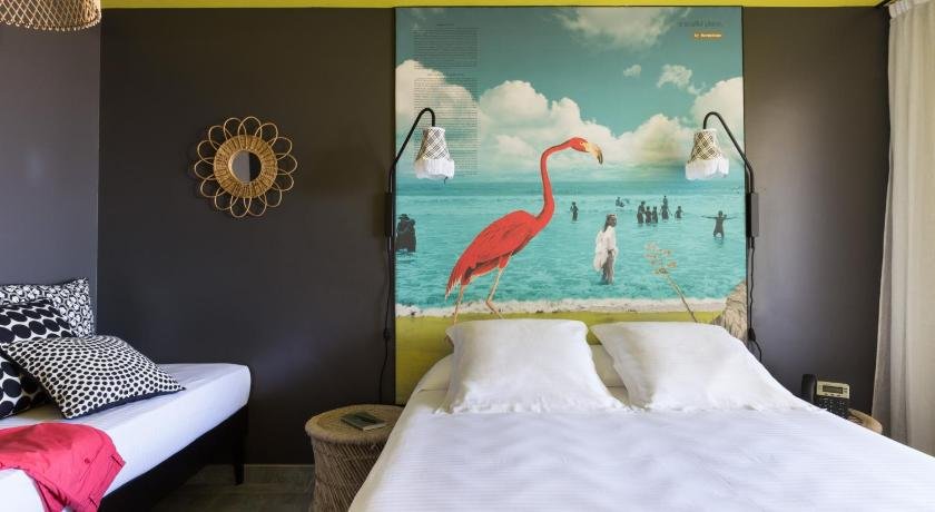 Située en étage et accessible par ascenseur, cette chambre offre un balcon privé avec une vue imprenable sur la piscine de l’hôtel. Dotée d’un lit double et d’une décoration moderne, elle est idéale pour ceux qui souhaitent profiter de l’ambiance dynamique de l’établissement tout en disposant d’un espace extérieur privilégié.