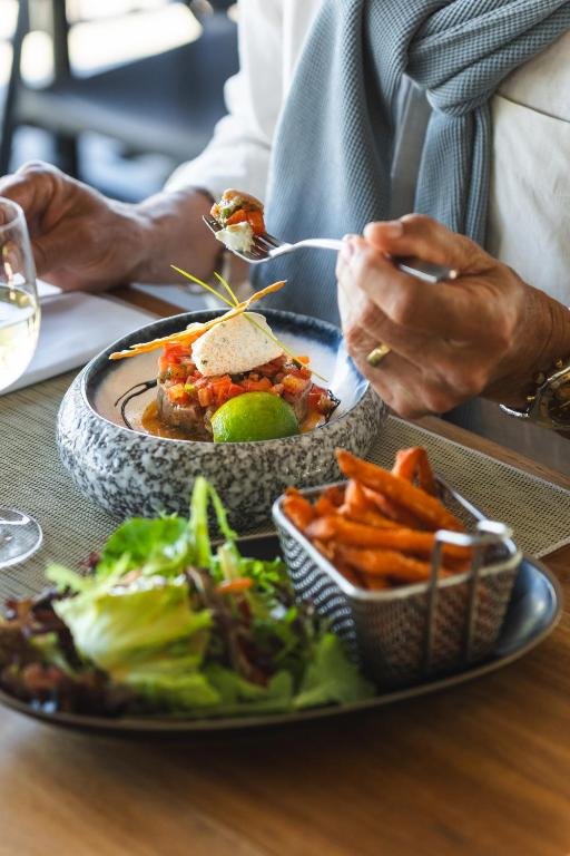 Le point fort de cet Hôtel Victoria Saint-Pierre Réunion réside dans son espace de vie central. La piscine extérieure, entourée de bains de soleil, est le cœur battant de l’établissement, invitant à la détente après une journée passée sur les routes sinueuses du Sud Sauvage. Côté gastronomie, le restaurant «Le Palmier» propose une carte qui célèbre les produits locaux à travers une cuisine inventive et savoureuse. Cet établissement à la Réunion met un point d’honneur à offrir un service attentionné et personnalisé, faisant de chaque passage une expérience humaine chaleureuse. Les espaces lounge et le bar permettent de prolonger les soirées dans une ambiance décontractée, typique de l’art de vivre du Sud de l’île.