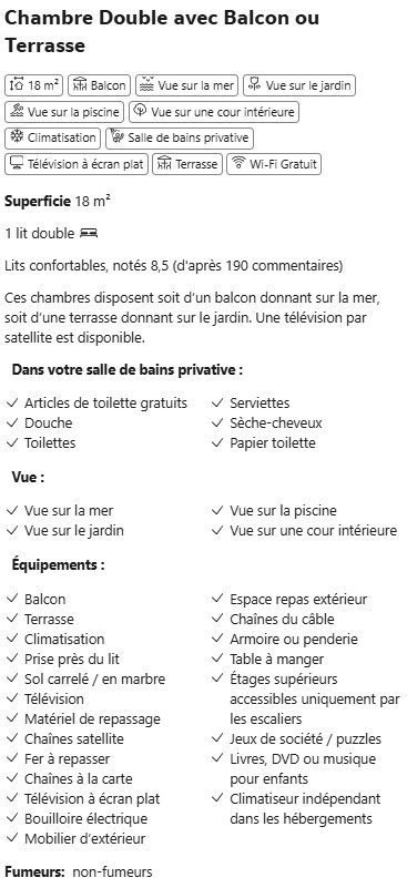 CHAMBRE DOUBLE AVEC BALCON OU TERRASSE