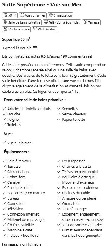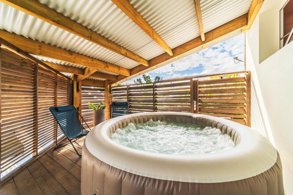 Cette suite de 50 m² est un véritable sanctuaire de luxe. Elle comprend une chambre séparée, un salon indépendant et une terrasse privative face à l’océan Indien. Le point fort réside dans son bain à remous privé, idéal pour se détendre. Avec sa machine à café et sa douche à l’italienne, elle offre une expérience haut de gamme à Saint-Pierre Réunion.