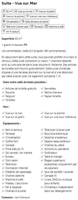 Équipements chambresClimatisation, Coffre-fort, TV écran plat, Bureau, Sèche-cheveux, Articles de toilette.