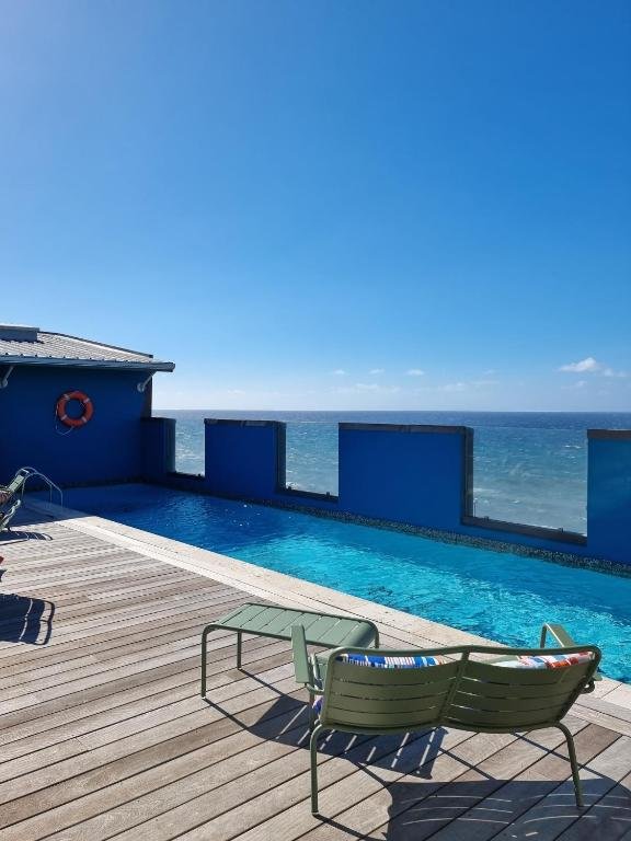 Oui, le Dina Morgabine dispose d’une piscine à débordement chauffée située sur le toit-terrasse, offrant une vue panoramique sur l’océan.