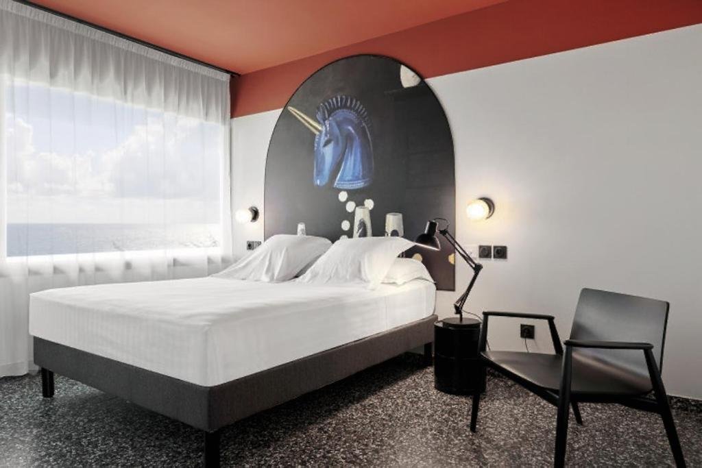 Située dans les étages supérieurs, cette chambre de 21 m² offre une vue magnifique sur la mer. Elle dispose d’un lit double, de la climatisation et d’un minibar. L’esthétique soignée et la lumière naturelle font de cet espace un refuge romantique et apaisant dans ce Dina Morgabine Hôtel Ciudad Réunion.