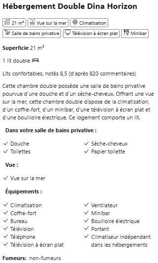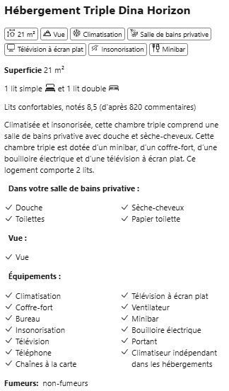 HÉBERGEMENT TRIPLE DINA HORIZON