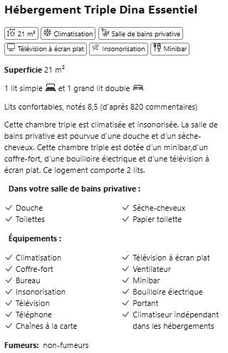 HÉBERGEMENT TRIPLE DINA ESSENTIEL