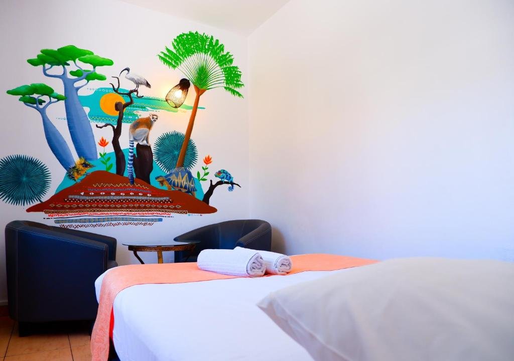 Idéale pour les petits groupes, cette chambre de 25 m² comprend un lit simple et un grand lit double. Elle se distingue par sa salle de bains privative équipée d’une douche à l’italienne et d’une baignoire. Insonorisée et dotée d’une vue magnifique sur les sommets, elle offre tout le confort nécessaire au sein de cet établissement à la Réunion.
