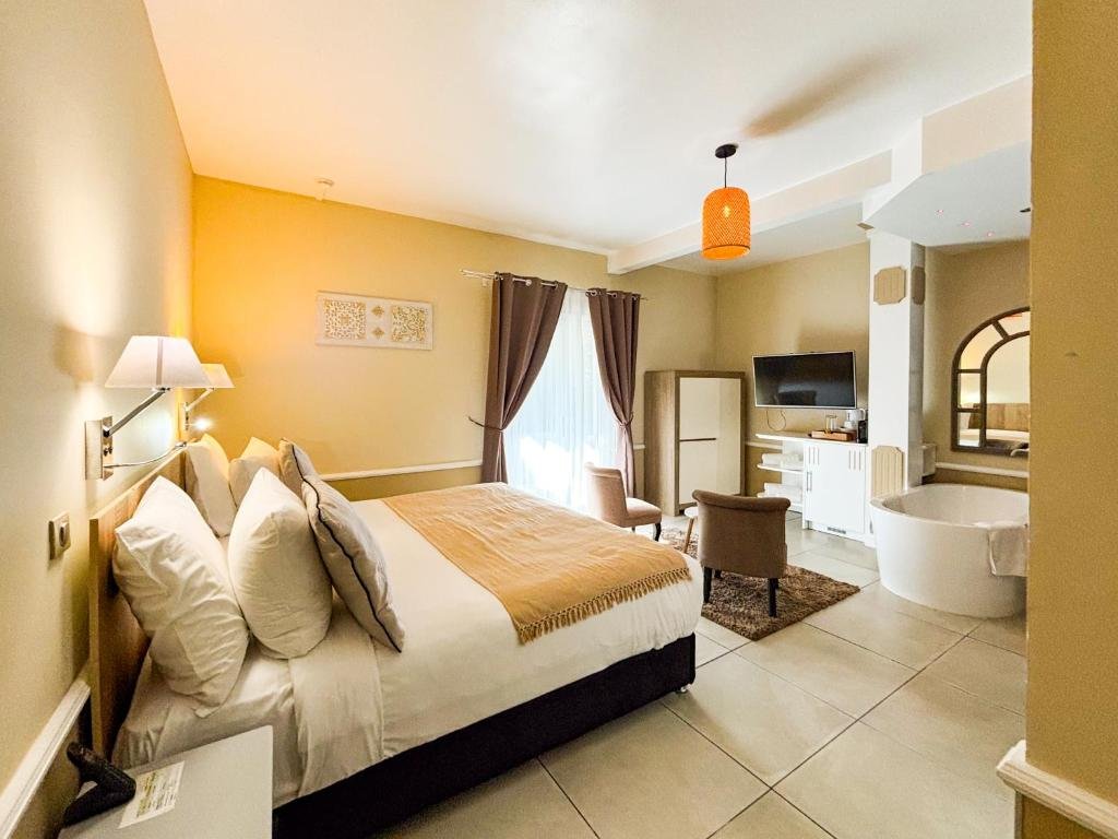 Cette suite de 30 m² représente le summum du raffinement à l’Île de la Réunion. Offrant une décoration soignée et un lit double spacieux, elle inclut une salle de bains avec baignoire et un espace salon. Un choix privilégié pour les amoureux en quête de luxe dans cet hôtel Saint-Pierre Réunion.
