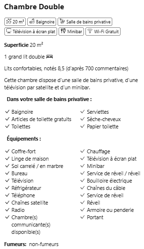 | Services | Wi-Fi gratuit, Parking privé gratuit, Réception 24h/24, Bagagerie. |