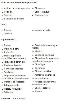 | Services & Web | Wi-Fi gratuit haut débit, Parking privé gratuit, Service de ménage, Réception. |