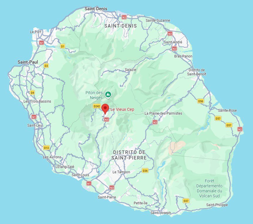 EMPLACEMENT ET SITUATION DU VIEUX CEP À LA RÉUNION