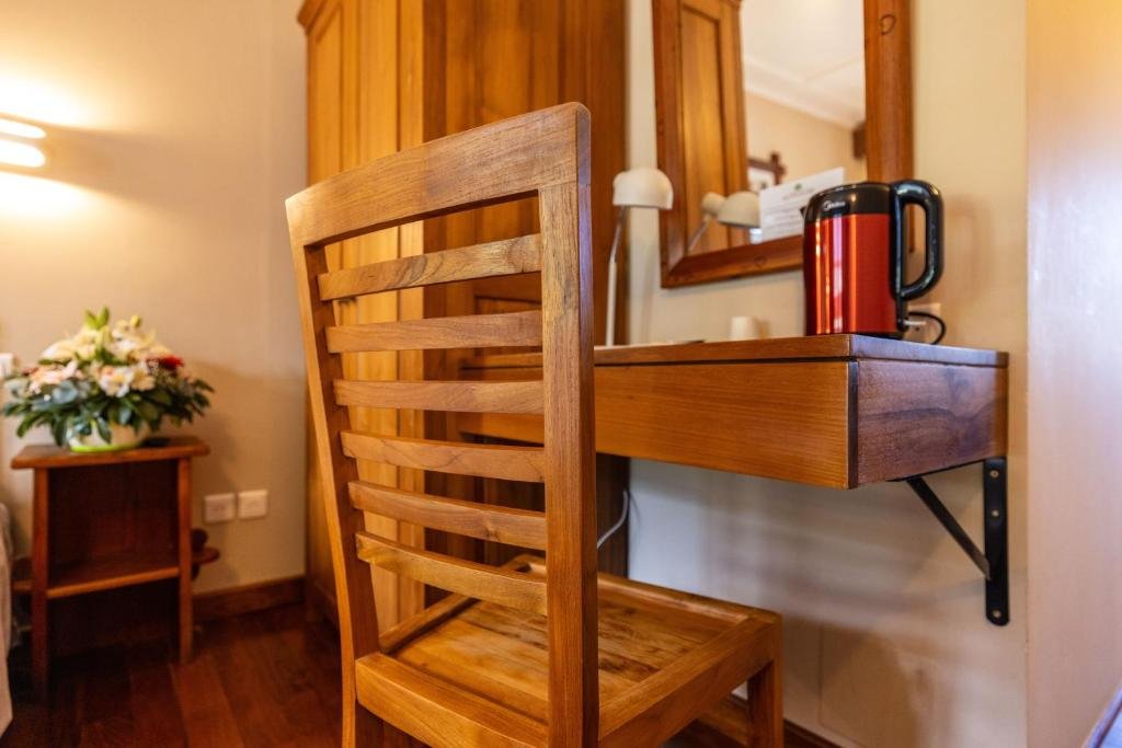 Plus spacieuse avec ses 25 m², cette chambre offre un niveau de confort supérieur avec une décoration raffinée. Elle bénéficie d’un balcon avec une vue panoramique imprenable sur les sommets du cirque de Cilaos. Dotée du Wi-Fi gratuit et d’un plateau de courtoisie, c’est le refuge parfait pour les voyageurs exigeants séjournant à l’Île de la Réunion.