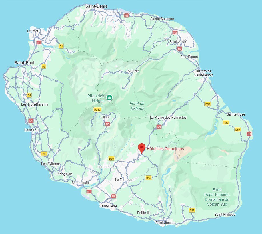 EMPLACEMENT ET SITUATION DES GÉRANIUMS À LA RÉUNION