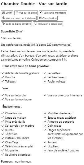 | Général | Chambres insonorisées, Établissement non-fumeurs, Vue sur la montagne. |