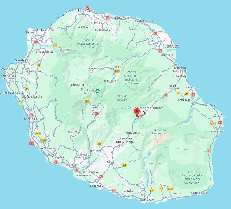 Le centre de l’île, aussi appelé «Les Hauts», s’étend sur les plateaux centraux et les cirques. L’accès se fait principalement par la route nationale 3 (Route des Plaines) qui relie Saint-Pierre à Saint-Benoît, ou par les routes sinueuses menant aux cirques. Bien que plus éloignée des aéroports, cette zone est le pivot géographique de l’île, permettant de basculer entre les côtes Est, Sud et Ouest tout en restant au plus près des sommets.