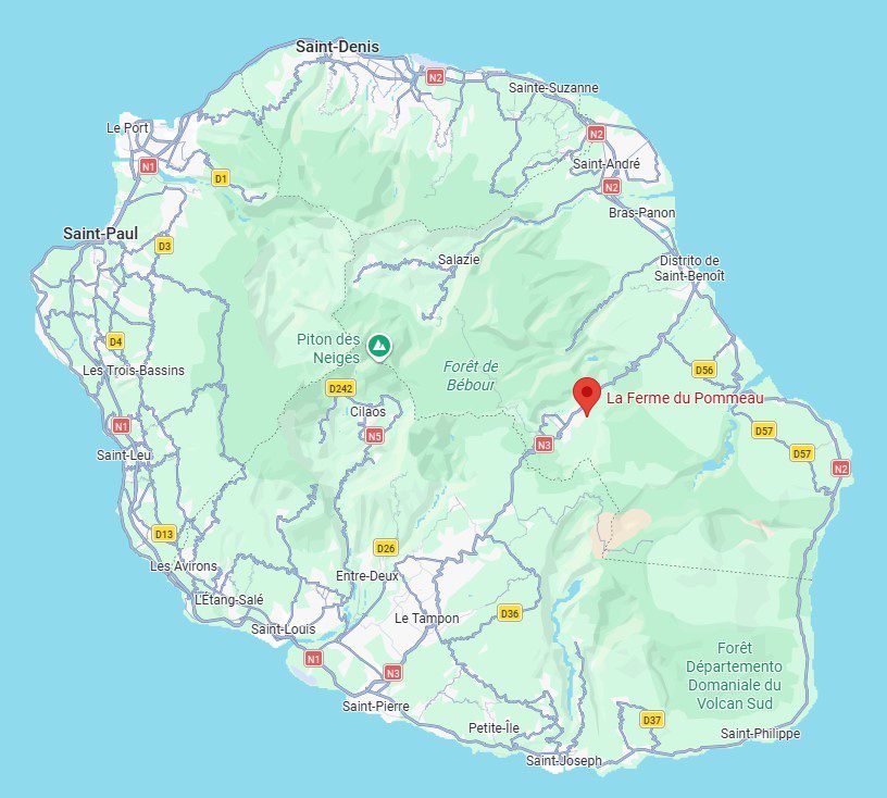 EMPLACEMENT ET SITUATION DE LA FERME DU POMMEAU À LA RÉUNION