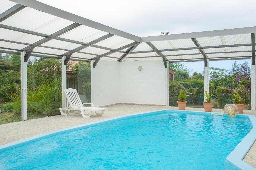 Oui, La Ferme du Pommeau dispose d’une piscine couverte et chauffée, idéale pour se baigner toute l’année à la Réunion, même par temps frais.