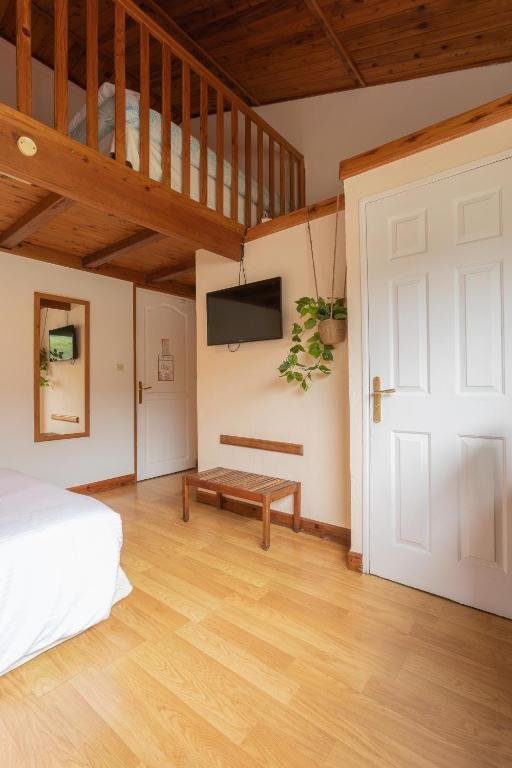 Cette chambre de 20 m² dispose d’un lit double et se distingue par sa salle de bains avec baignoire, idéale pour se relaxer. Elle offre une vue panoramique sur les remparts volcaniques et le jardin intérieur. Un choix de qualité pour apprécier le calme des hauts au sein de la Ferme du Pommeau La Plaine des Palmistes à l’Île de la Réunion.
