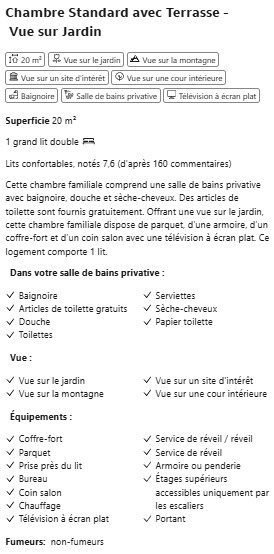 | Général | Établissement non-fumeurs, Chambres familiales, Vue montagne et jardin. |