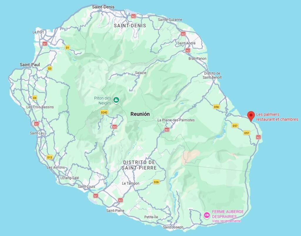EMPLACEMENT ET SITUATION DU LES PALMIERS À LA RÉUNION