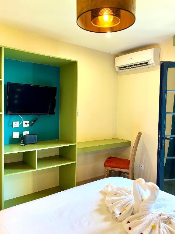 D’une superficie de 23 m², cette chambre climatisée offre un espace moderne et fonctionnel pour deux personnes. Orientée vers une cour intérieure calme, elle dispose d’un grand lit double, d’une salle de bains privative et d’une télévision à écran plat. Un choix parfait pour une étape reposante dans cet hôtel de Sainte-Rose lors de votre tour de l’île de la Réunion.