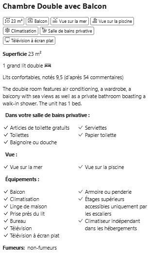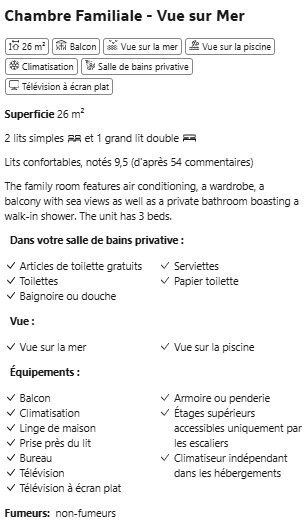 | Général | Établissement non-fumeurs, Chambres familiales, Entrée privée, Vue mer. |