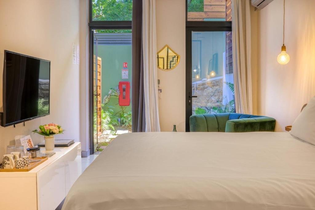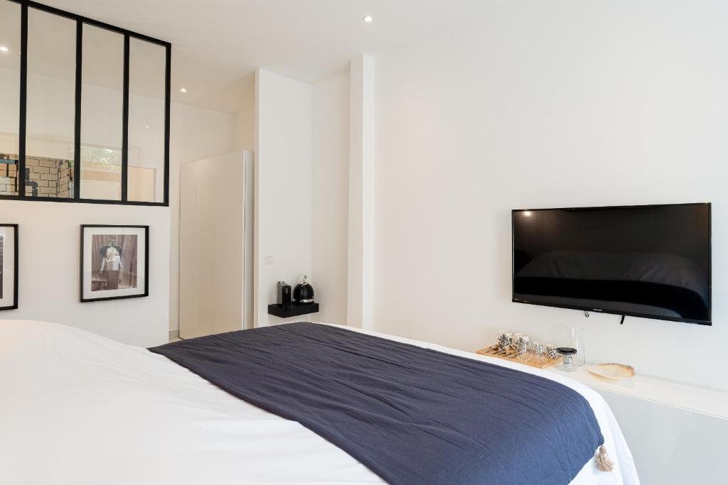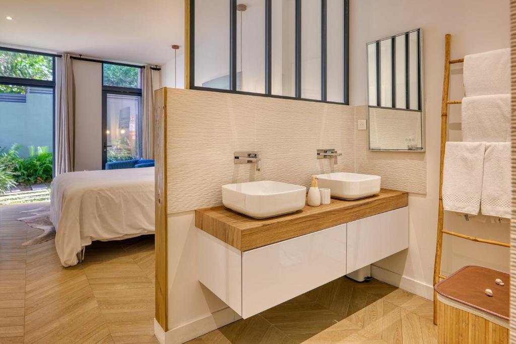 Ce studio de 22 m² offre un refuge intime avec une vue apaisante sur le jardin tropical. Équipé d’un très grand lit double (noté 9.3 pour son confort), il dispose d’une douche à l’italienne, de la climatisation et d’une télévision avec services de streaming. Profitez également d’une machine à café, d’un barbecue et d’une attention particulière avec du vin ou champagne offert.