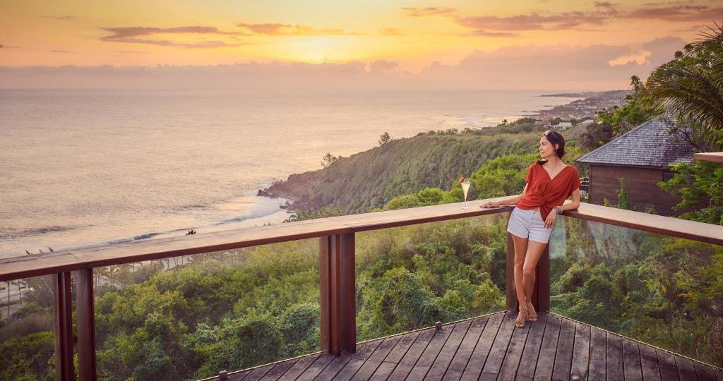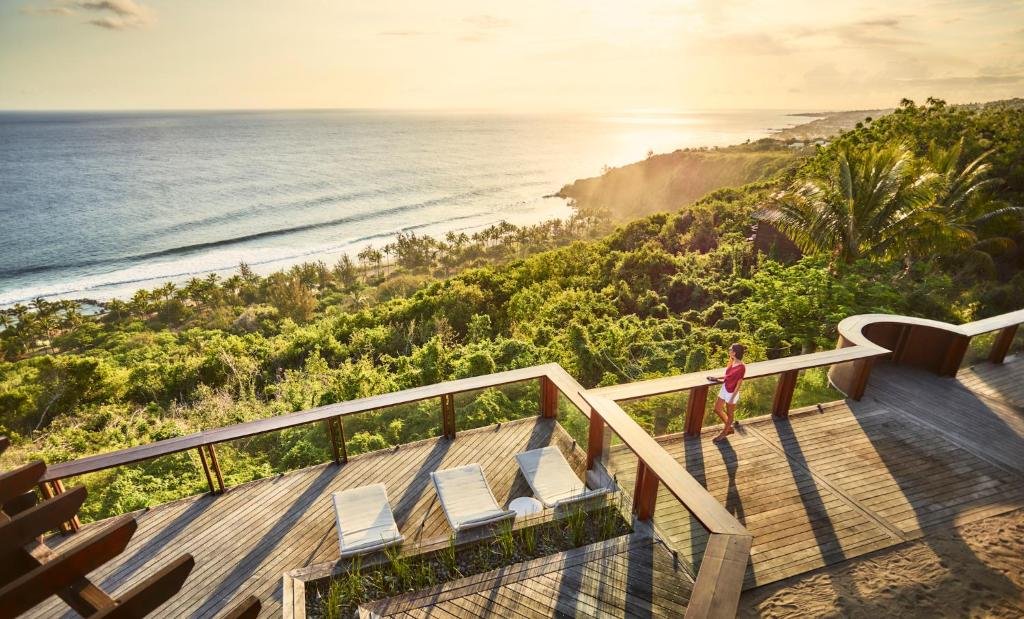 Perché en bord de falaise, ce lodge de 140 m² est le summum du romantisme. Il offre une piscine privée, une terrasse panoramique avec vue sur l’océan et une baignoire. Équipé d’un très grand lit double, ce logement d’exception garantit une intimité totale et un luxe exclusif dans cet hôtel Petite-Île à l’Île de la Réunion.