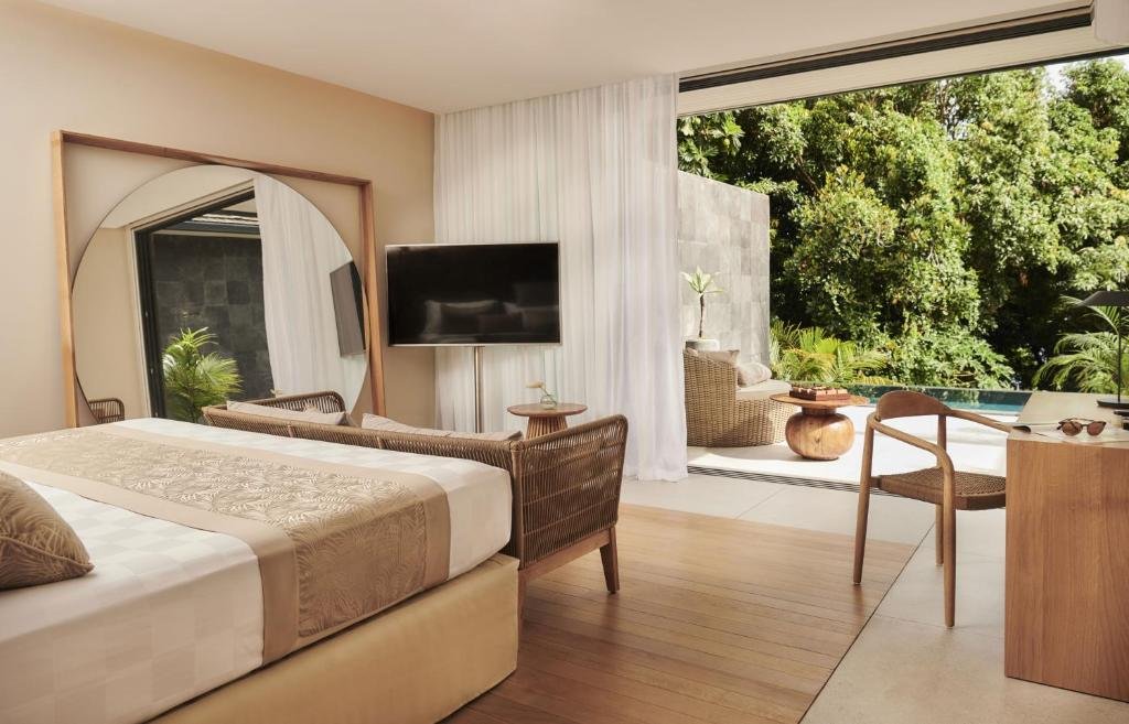 Plus vaste avec ses 41 m², cette unité propose un volume généreux et une atmosphère sereine. Elle dispose d’une grande terrasse privée face au jardin, d’une salle de bains privative moderne et d’équipements technologiques de pointe. Le luxe discret de cet établissement à la Réunion s’exprime pleinement dans cette catégorie de chambre spacieuse.
