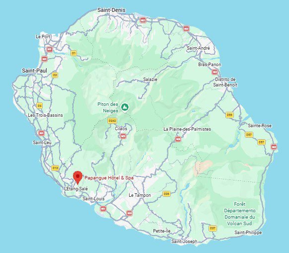 EMPLACEMENT ET SITUATION DU PAPANGUE HOTEL À L’ÎLE DE LA RÉUNION