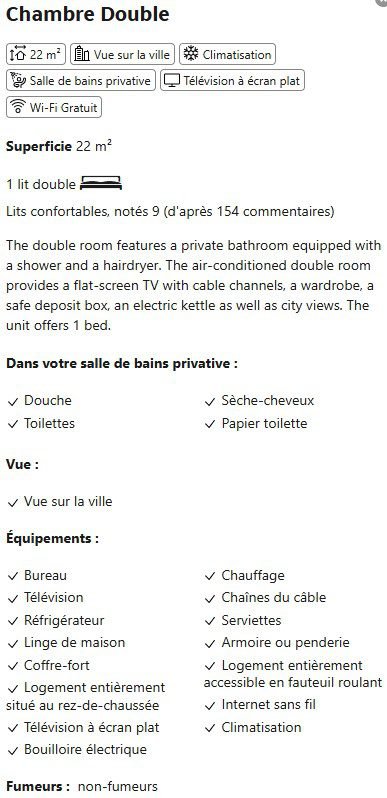 | Général | Établissement non-fumeurs, Coffre-fort, Local à vélos/équipements. |