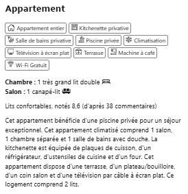 L’établissement Résidence Les Mascarins propose des logements de plain-pied accessibles aux personnes à mobilité réduite. L’enregistrement (check-in) s’effectue à partir de 14h00 et le départ (check-out) doit être fait avant 11h00. Une taxe de séjour locale est applicable par nuitée. Le parking privé est gratuit pour tous les clients. Les animaux de compagnie ne sont pas admis. Les conditions d’annulation dépendent des tarifs choisis sur Booking ou TripAdvisor.