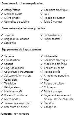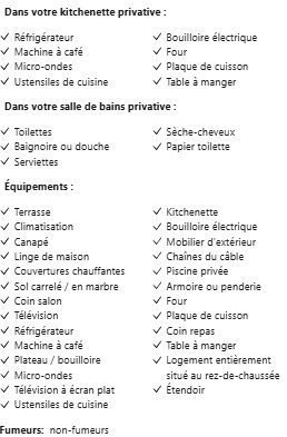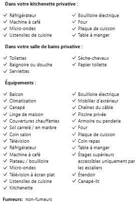 | Général | Établissement non-fumeurs, Coffre-fort, Entrée privée. |
