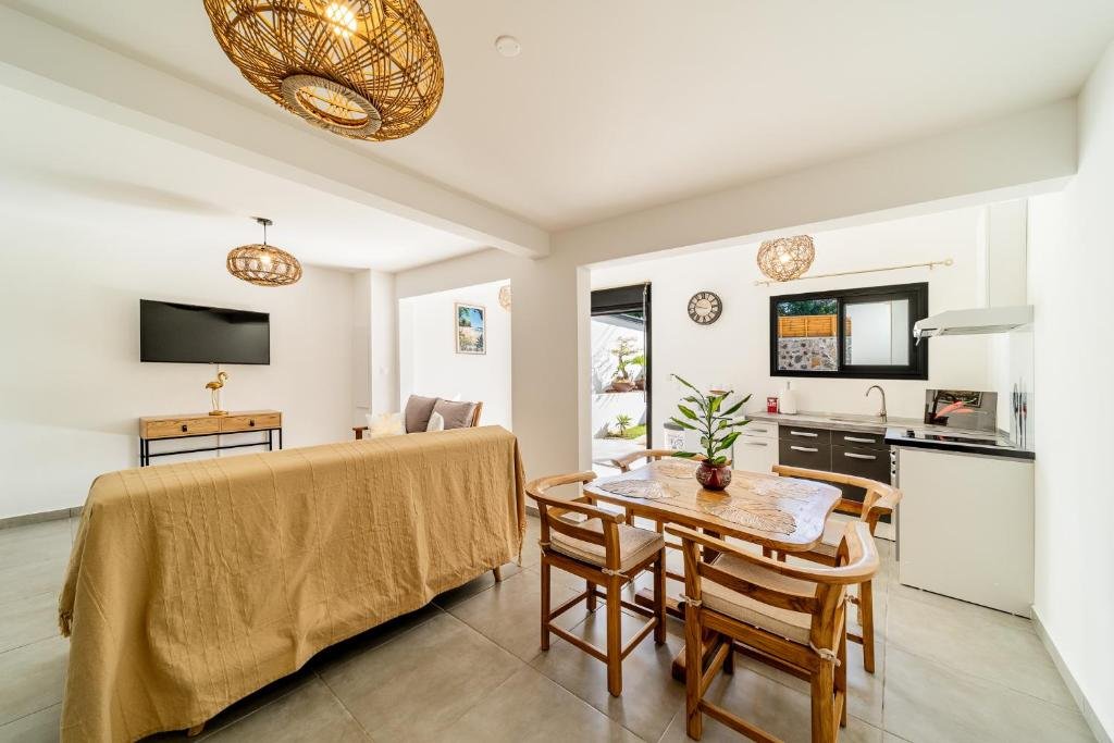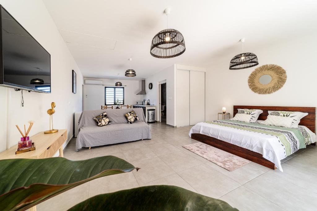Vivez une expérience d’indépendance absolue dans cet appartement entier de haut standing. Il comprend une chambre séparée avec un très grand lit double et un salon avec canapé-lit. Entièrement climatisé, il propose une kitchenette moderne, une terrasse privative et une piscine privée pour des moments de détente exclusifs à l’Île de la Réunion dans ce cadre d’exception.