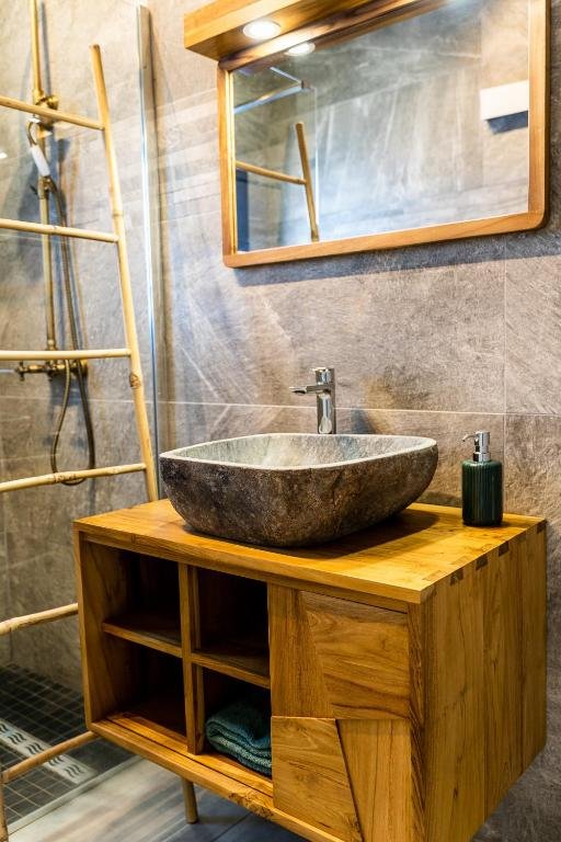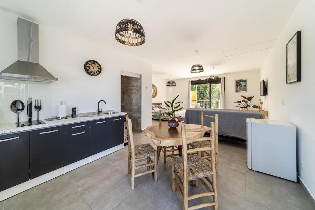 Le Studio Deluxe est le cocon idéal pour les couples en quête de romantisme. Ce studio entier dispose d’un très grand lit double, d’une kitchenette fonctionnelle et de la climatisation. Les hôtes peuvent profiter d’un balcon privé et de leur propre piscine privée, faisant de ce séjour à Petite-Île une parenthèse de luxe inoubliable au sein de cet établissement à la Réunion.