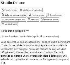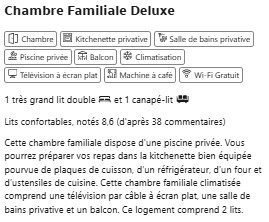 | Services | Wi-Fi gratuit, Parking privé gratuit, Service de ménage, Bagagerie. |