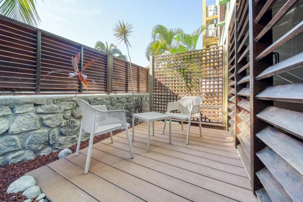 Parfait pour les familles, ce duplex de 45 m² peut accueillir jusqu’à 4 personnes. Il se compose d’un salon avec canapé-lit au rez-de-chaussée et d’une chambre spacieuse à l’étage. La grande varangue avec kitchenette équipée permet de partager des moments conviviaux. Cet appartement allie espace et services hôteliers pour des vacances réussies sur l’île de la Réunion.