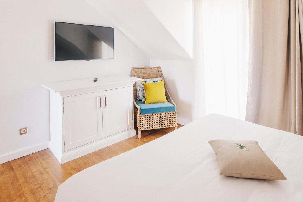 D’une superficie de 26 m², cette chambre climatisée offre un confort absolu avec son très grand lit double. Décorée avec soin, elle dispose d’une salle de bains privative, d’une machine à café et d’un minibar. Un espace de vie élégant et chaleureux, parfait pour un séjour romantique au sein de cet hôtel Ciudad Réunion.