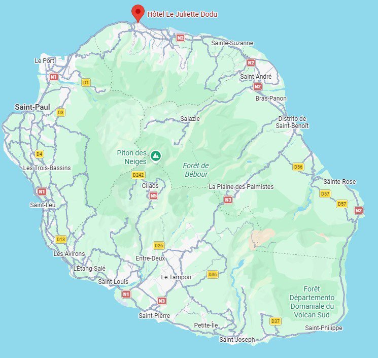 L’hôtel se situe dans le quartier résidentiel et d’affaires de Sainte-Clotilde, à 5 minutes du centre commercial Carrefour et de la Technopole. Le front de mer et le sentier du littoral sont accessibles rapidement. L’aéroport Roland Garros est à seulement 8 minutes en voiture. C’est l’emplacement stratégique pour rayonner sur le Nord de l’île de La Réunion.