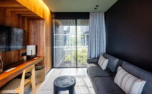 Cette suite de 35 m² propose un agencement haut de gamme avec une chambre séparée et un salon équipé d’un canapé-lit. Donnant sur le jardin, elle dispose d’une kitchenette pratique avec micro-ondes, plaques de cuisson et ustensiles. Climatisée et dotée d’une terrasse avec coin repas extérieur, elle offre une expérience de vie résidentielle unique au sein de ce resort à La Réunion.