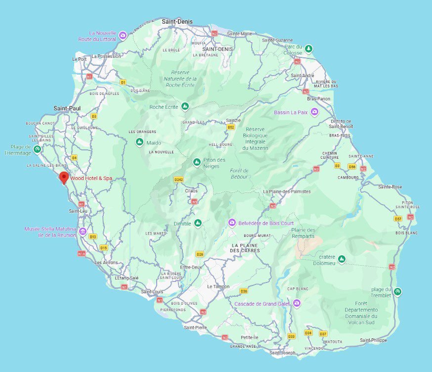 EMPLACEMENT ET SITUATION DU WOOD HÔTEL & SPA À LA RÉUNION